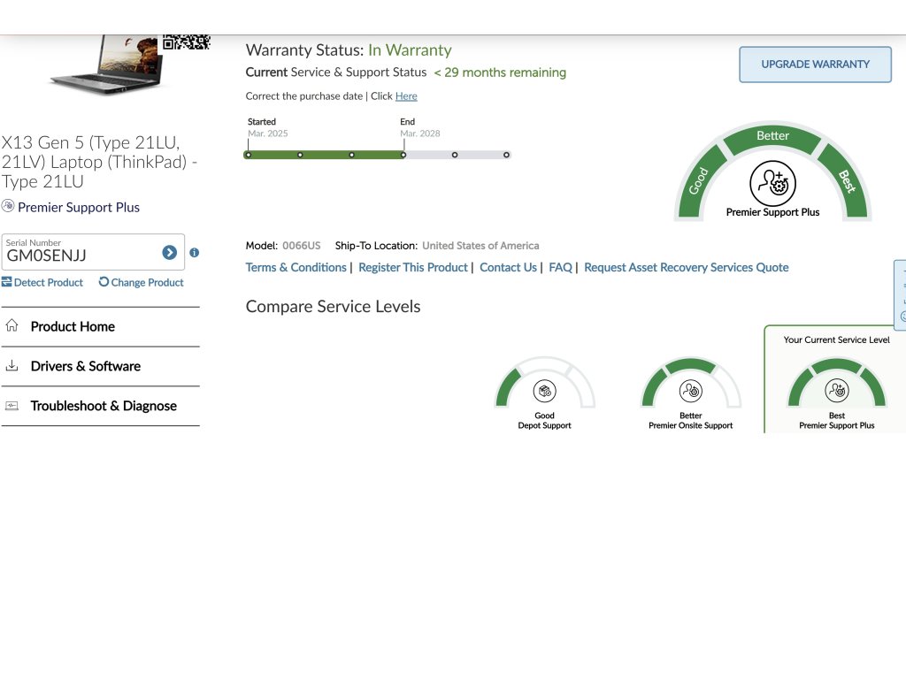 Do 26. března 2028 má platnou nejdražší záruku lenovo Premier Support Plus, včetně Accidental Damage Protection - tedy pokrývá i různé závady způsobené uživatelem jako polití, poškození pádem apod., při kterých můžete dostat i nový kus. Přesné podmínky této záruky jsou na stránkách lenovo.com.